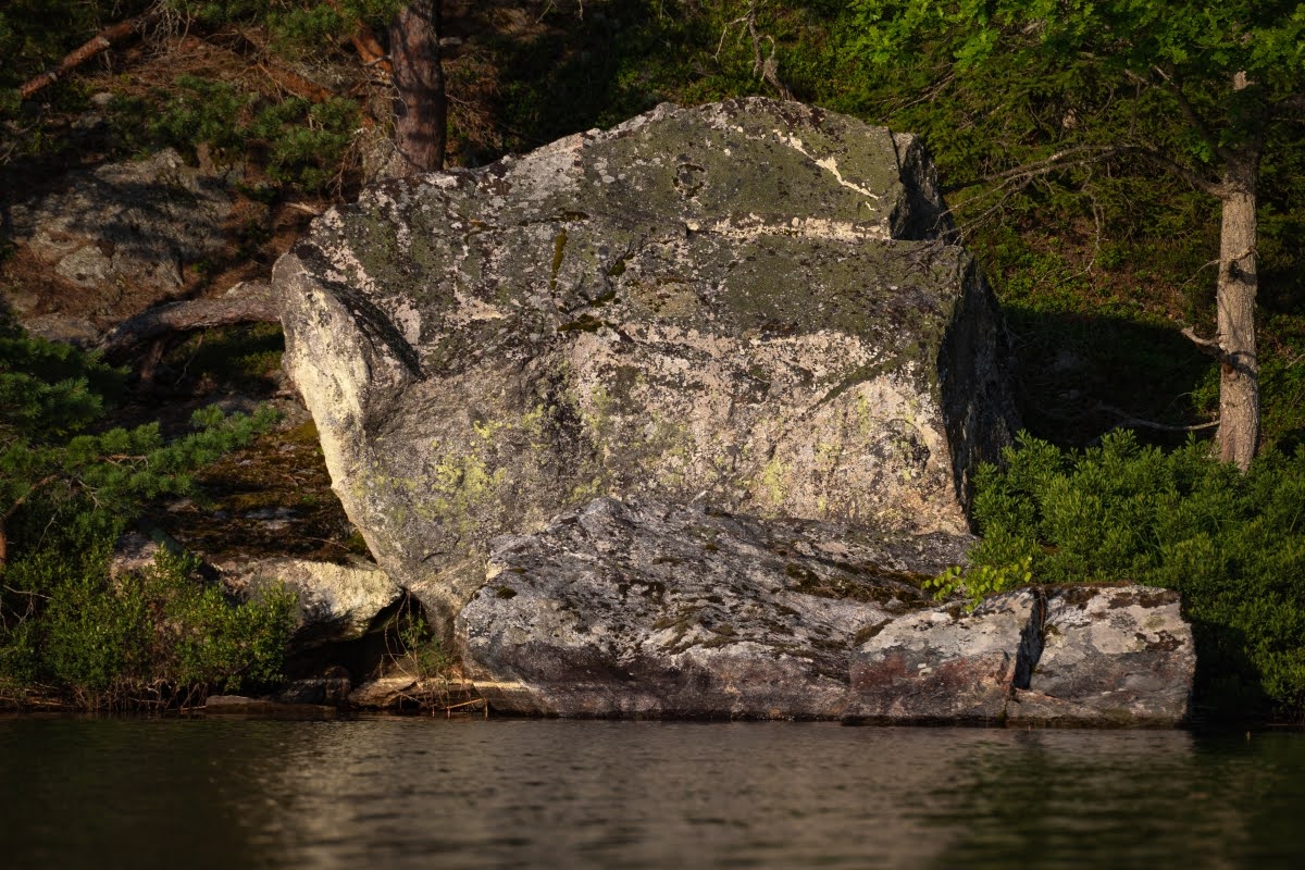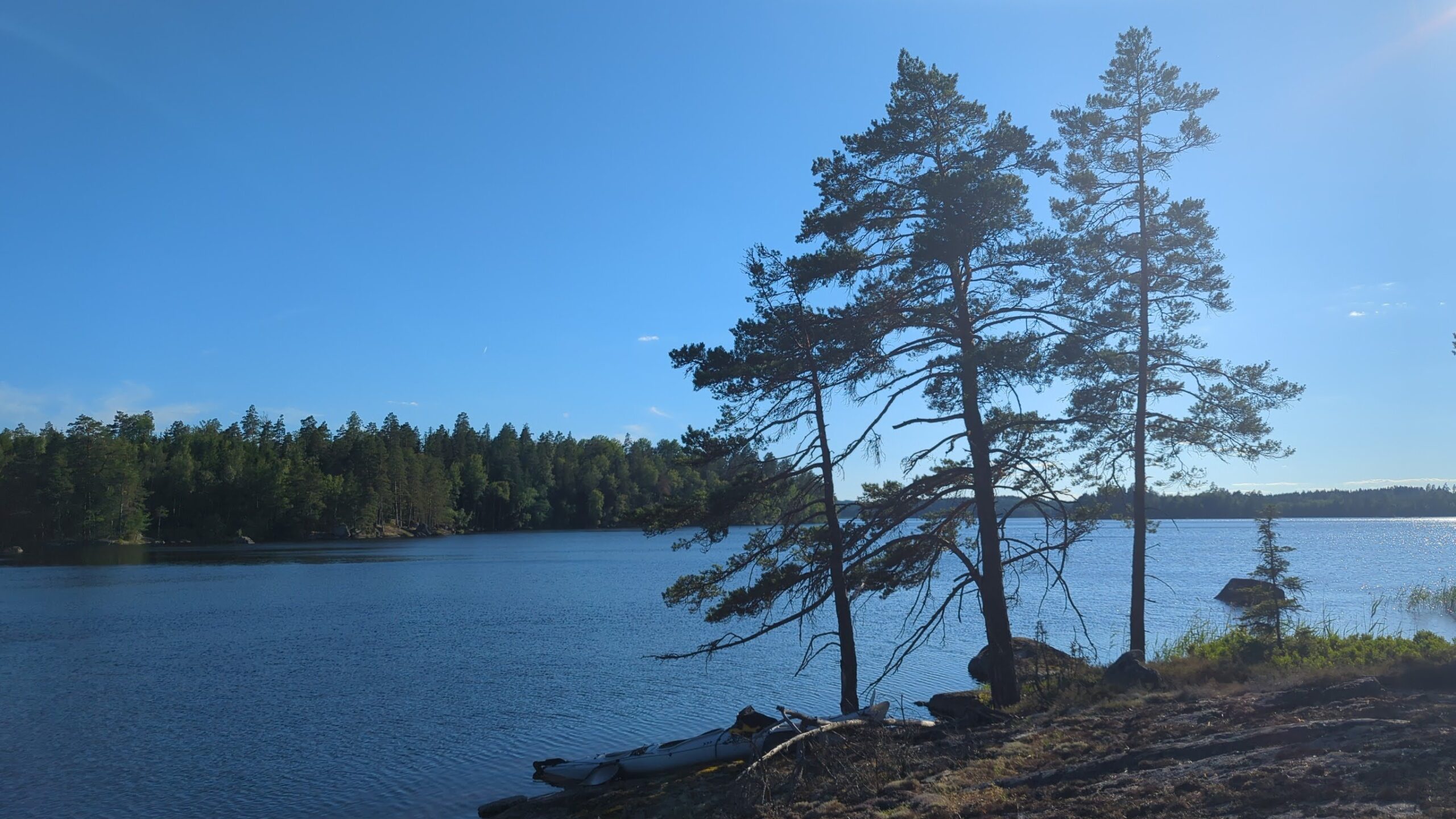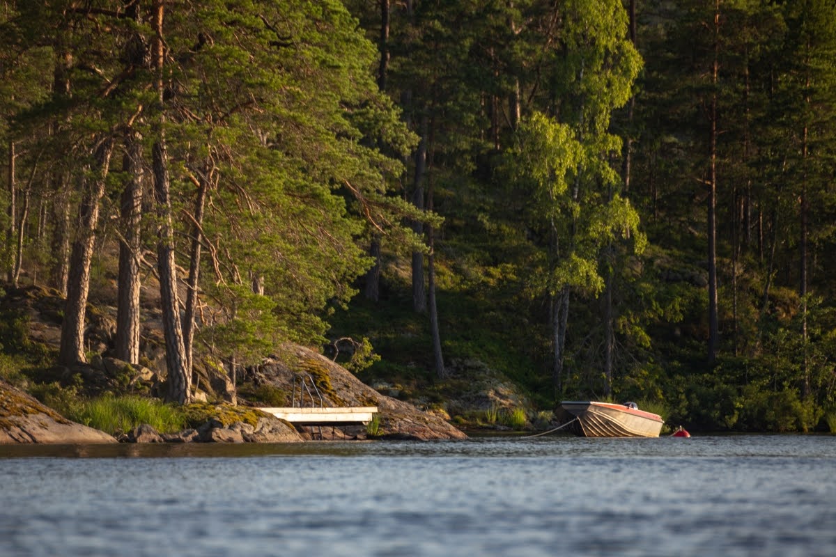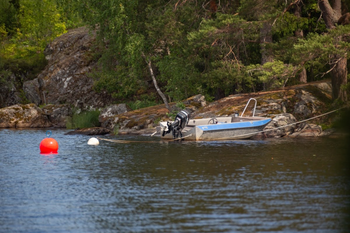 Tolle Plätze zum Anlanden gibt es zuhauf, manchmal ist es durch das überwiegend felsige Ufer aber etwas tricky, hier sind erfahrene Paddler klar im Vorteil. Es gibt aber auch einige Stege, an denen Anglerboote verstaut sind, die auch wunderbar für Badepausen genutzt werden können, z.B. in den Buchten Halländeviken ganz im Westen des Sees oder Sänsleviken, wo sich auch eine Vindskydd befindet.