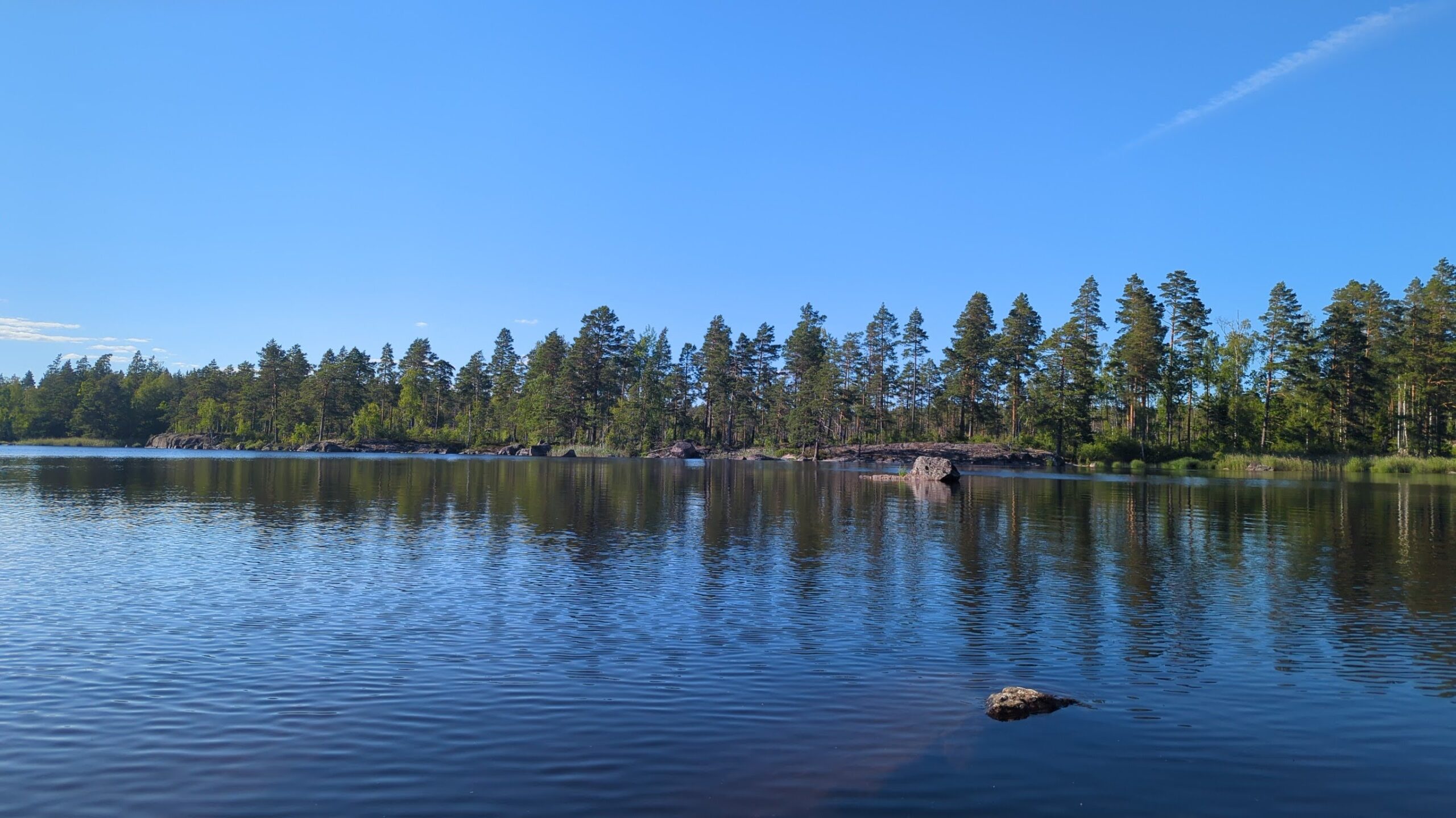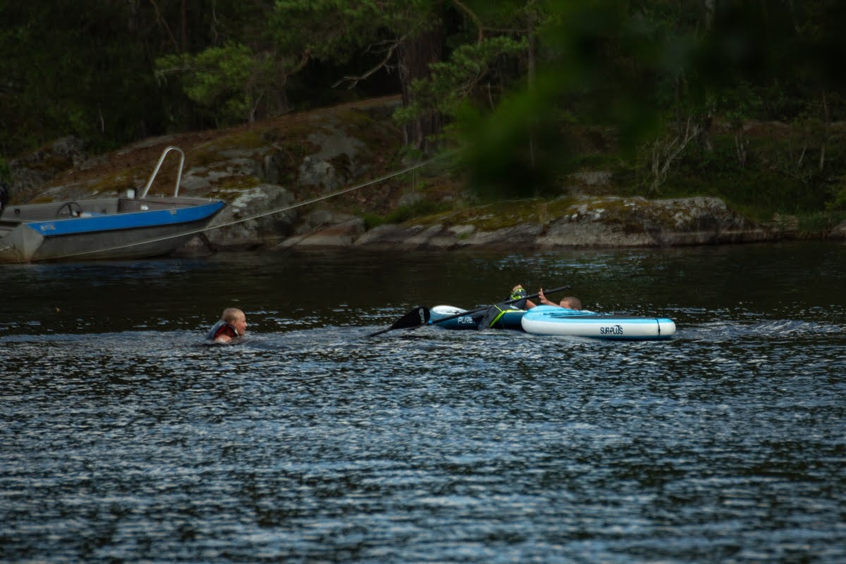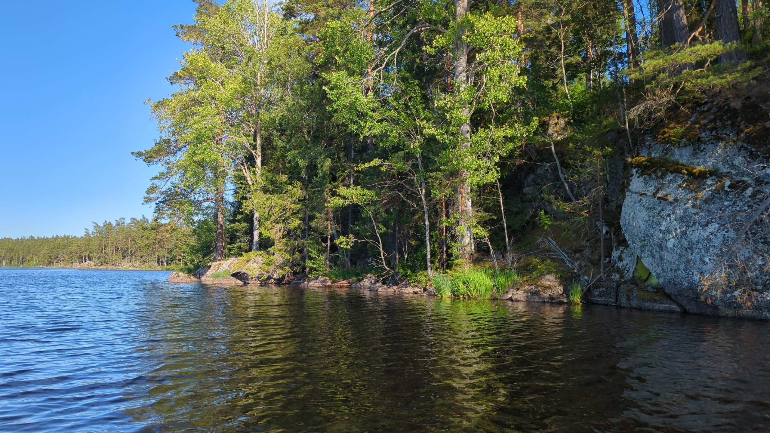 Tolle Plätze zum Anlanden gibt es zuhauf, manchmal ist es durch das überwiegend felsige Ufer aber etwas tricky, hier sind erfahrene Paddler klar im Vorteil. Es gibt aber auch einige Stege, an denen Anglerboote verstaut sind, die auch wunderbar für Badepausen genutzt werden können, z.B. in den Buchten Halländeviken ganz im Westen des Sees oder Sänsleviken, wo sich auch eine Vindskydd befindet.