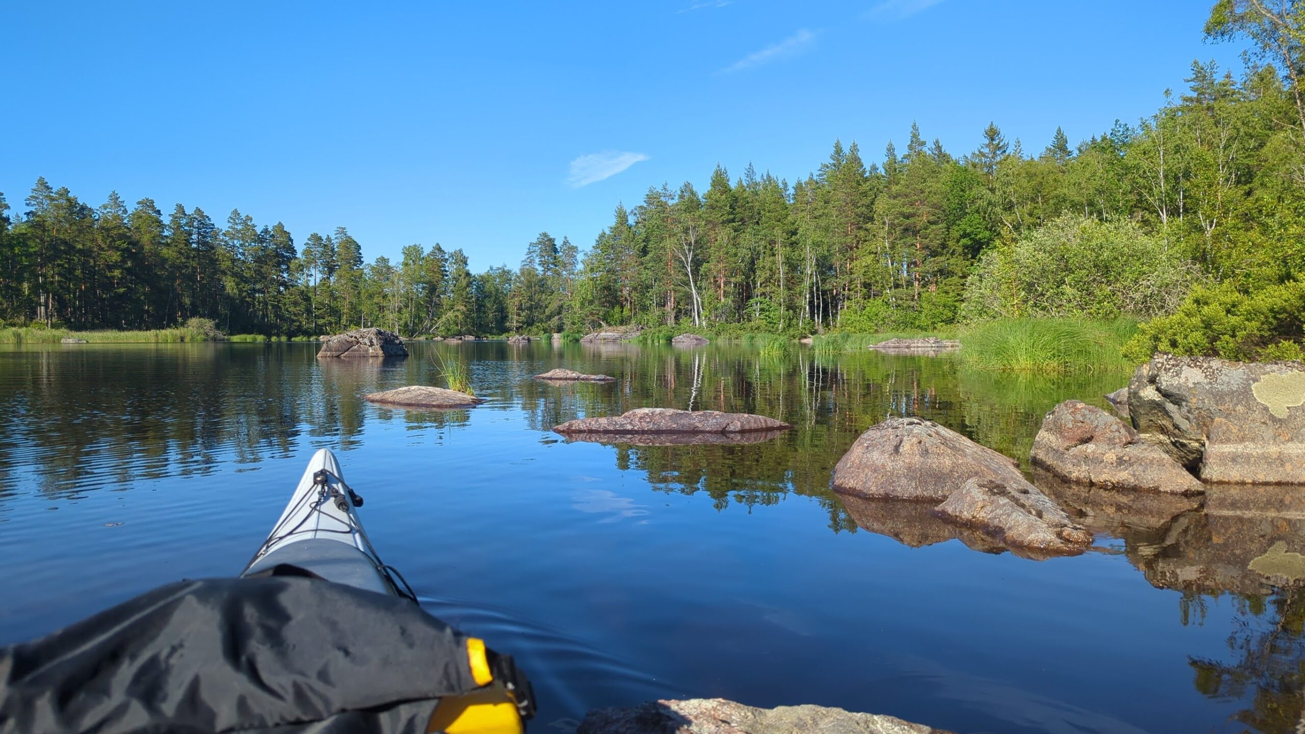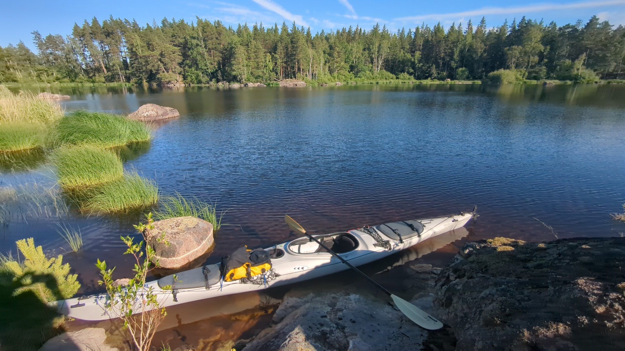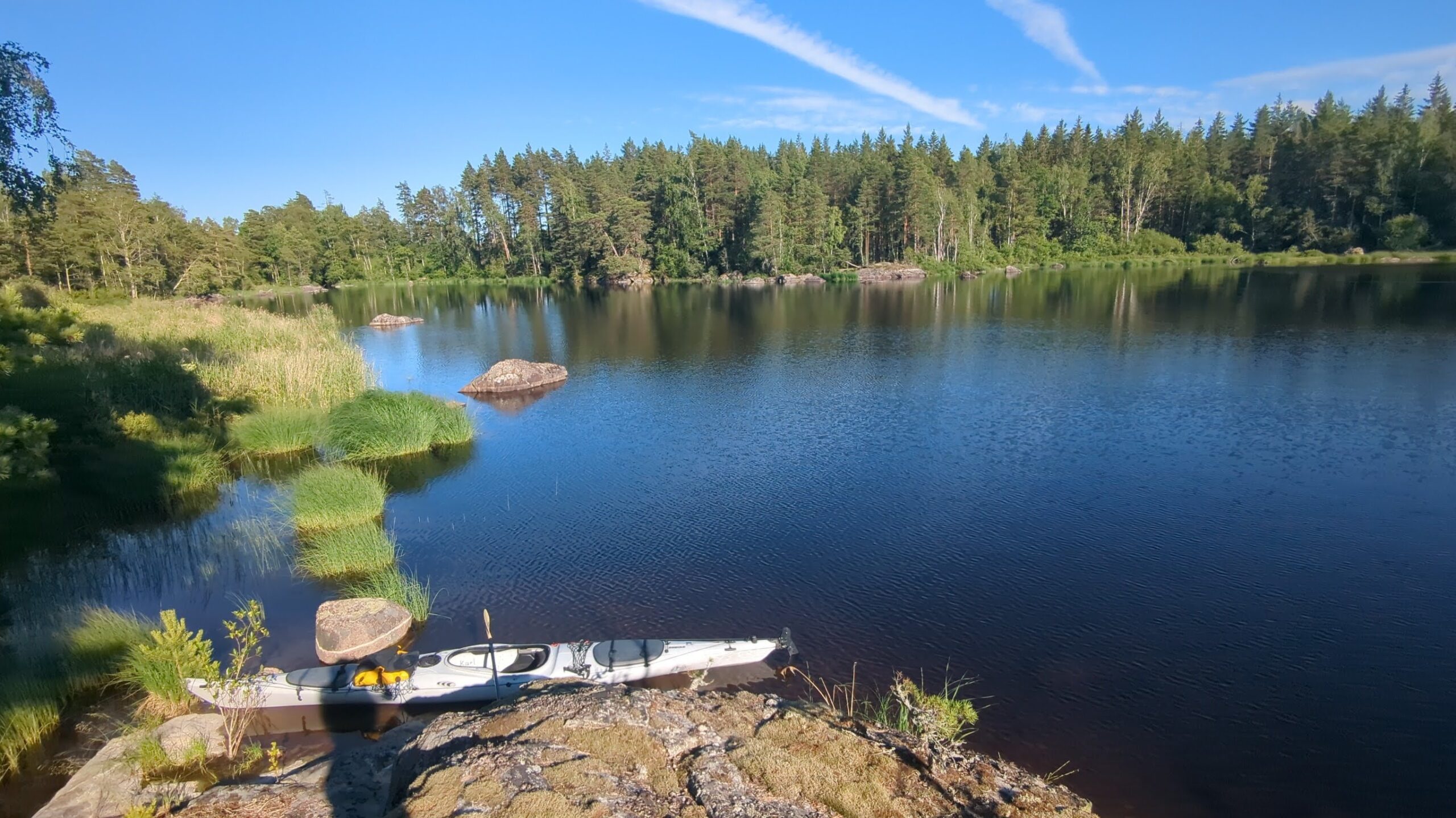 Heute war ich endlich mal wieder mit meinem alten Prijon Kodiak – Kajak auf dem Wasser. Nicht weit von meinem Wohnort entfernt gibt es einige kleinere bis mittelgroße Seen, auf denen man wunderbar Ein- bis Zweitagestouren unternehmen kann, für längere Touren mit Gepäck gibt es aber in Småland und Umgebung auch genügend reizvolle Alternativen, man denke nur an die Schären von Oskarshamn oder Västervik, an den riesigen Åsnen mit seinen vielen Inseln, den Bolmen, Sommen, Vättern, Åsunden und und und.