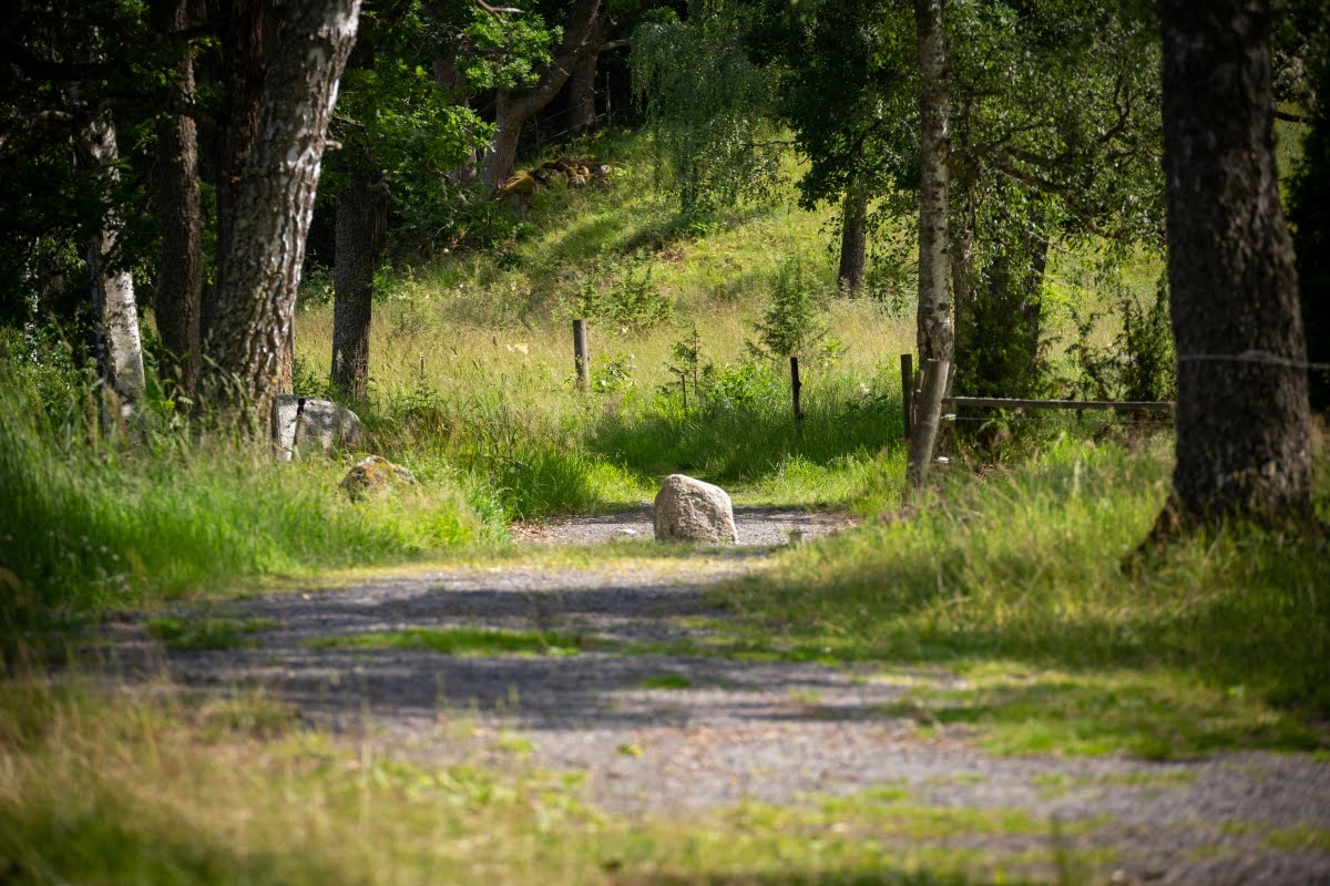 Gegenüber der Kirche von Stenberga zweigt eine kleine Schotterstraße ab, über die man den schönen Badeplatz bei Bodaryd erreicht. Hier kann man parken und das Boot problemlos einsetzen.
