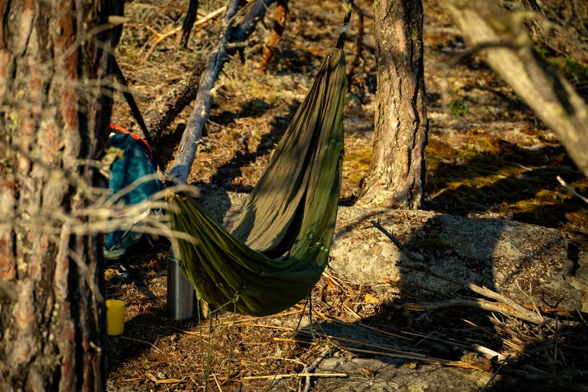 Ich zog es aber heute vor, an einem herrlichen einsamen Platz mein Kajak an Land zu ziehen, meine Hängematte auszupacken und ein spannendes Hörbuch zu genießen. Was gibt es Schöneres?