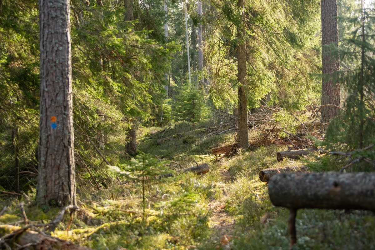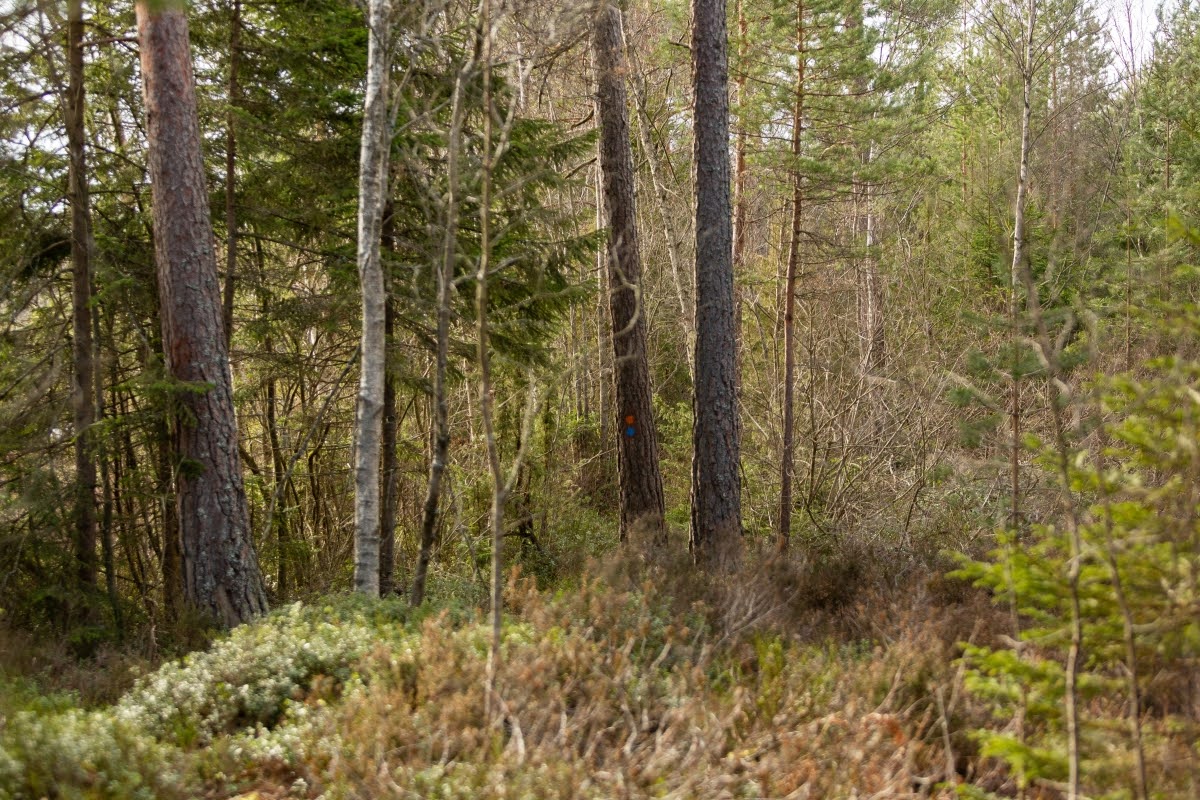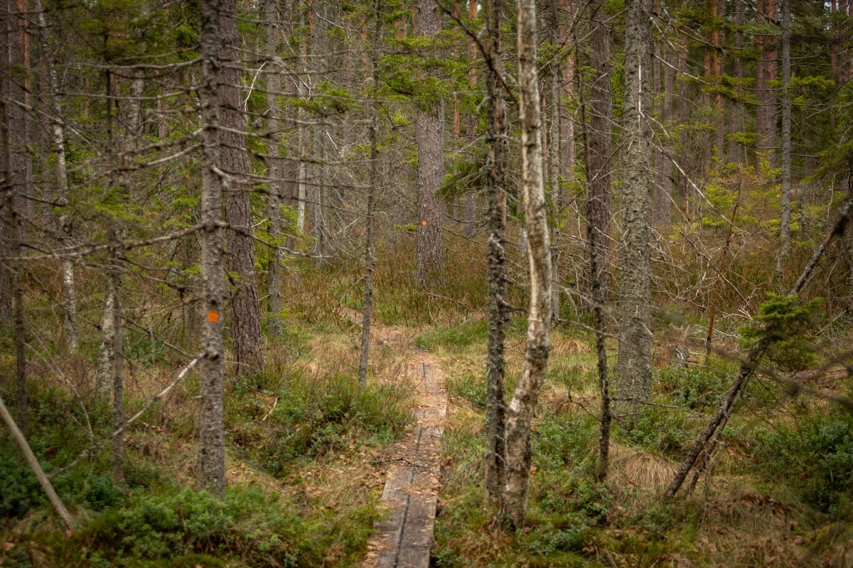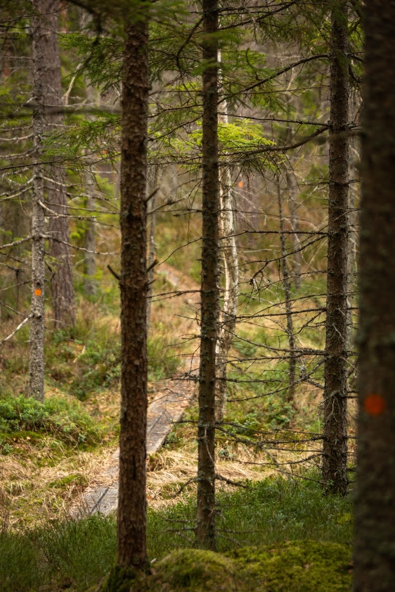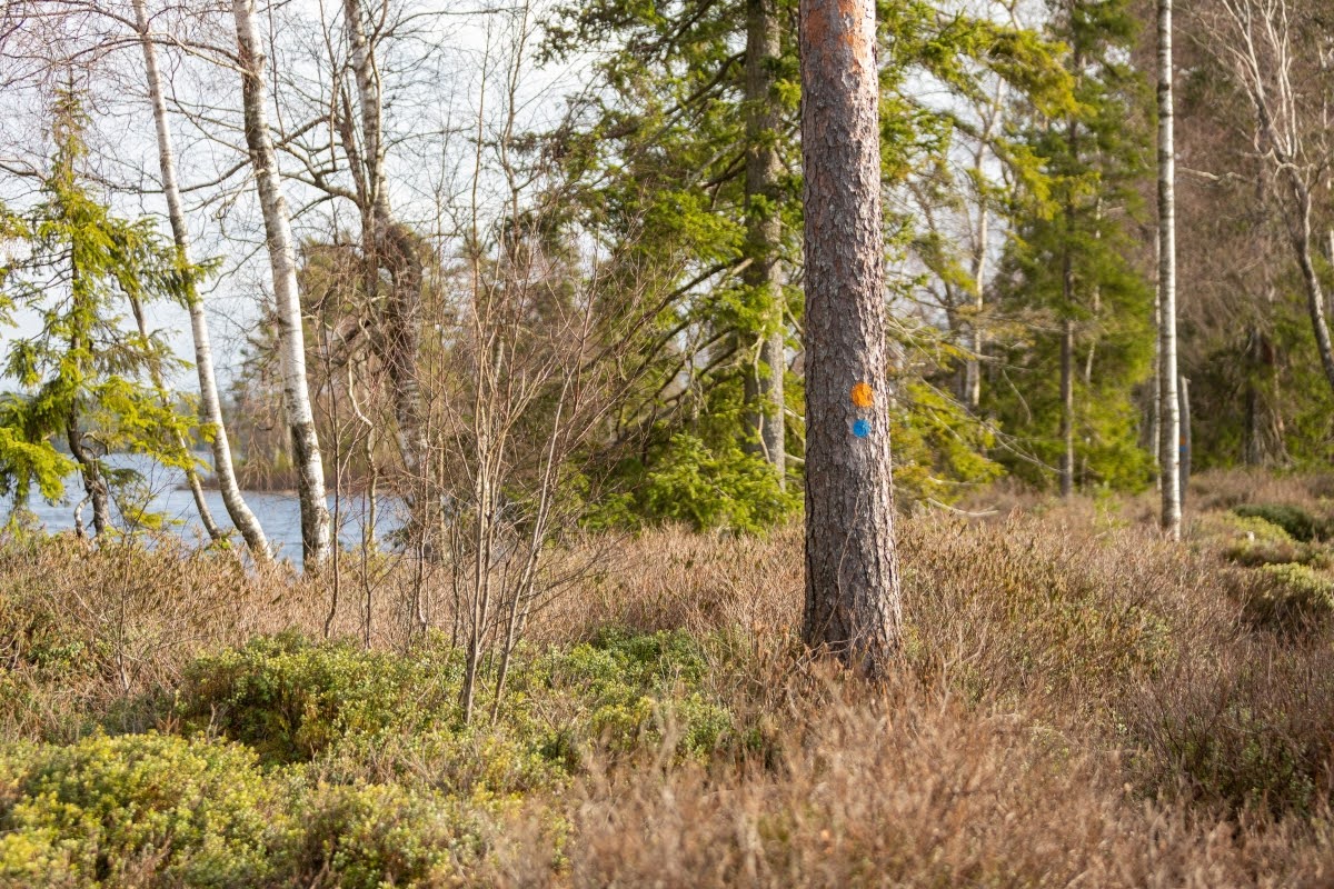 Anfangs ist der Riksväg 23, die Nationalstraße 23, die Linköping mit Malmö verbindet, akkustisch omnipräsent, erst gegen Mitte der Wanderung verstummen die Geräusche der vielbefahrenen Straße einigermaßen, erst recht an einem Tag wie heute bei starkem Wind.