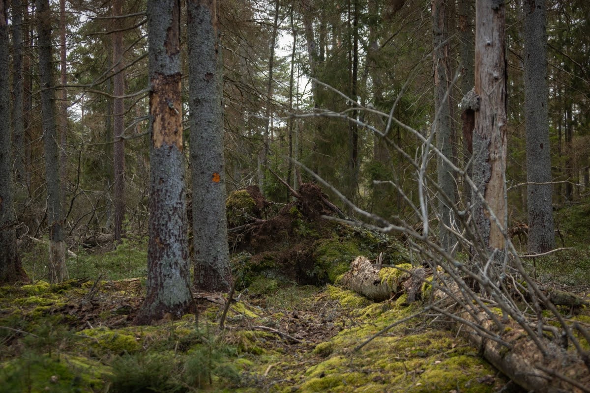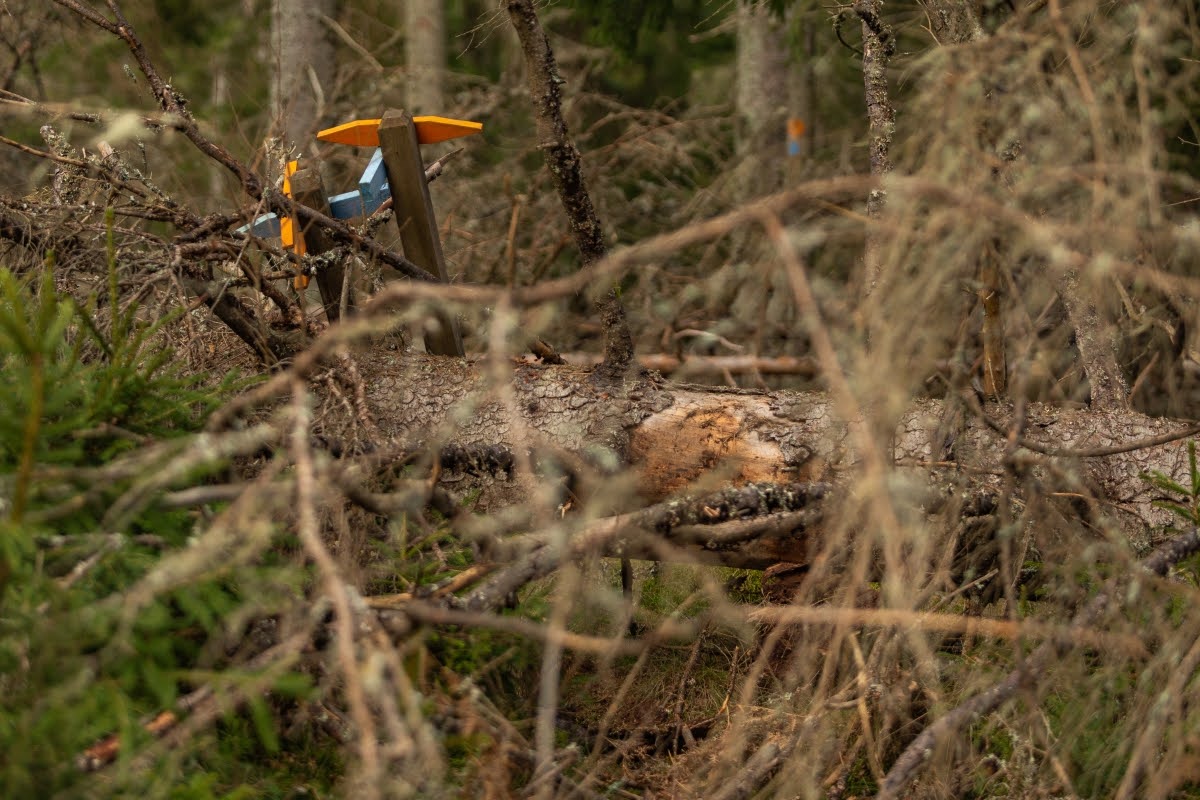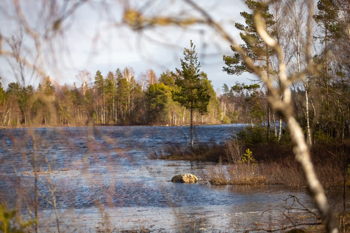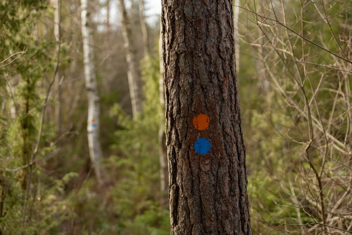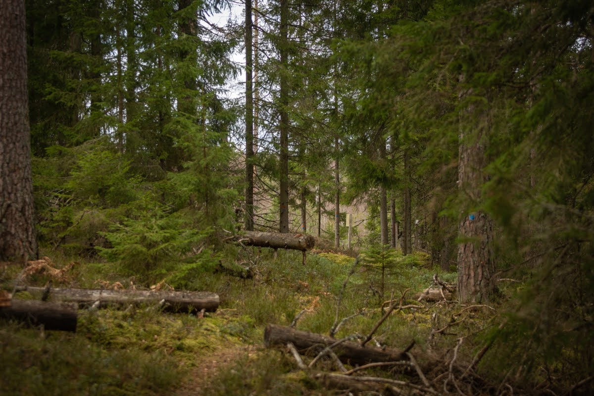 Anfangs ist der Riksväg 23, die Nationalstraße 23, die Linköping mit Malmö verbindet, akkustisch omnipräsent, erst gegen Mitte der Wanderung verstummen die Geräusche der vielbefahrenen Straße einigermaßen, erst recht an einem Tag wie heute bei starkem Wind.
