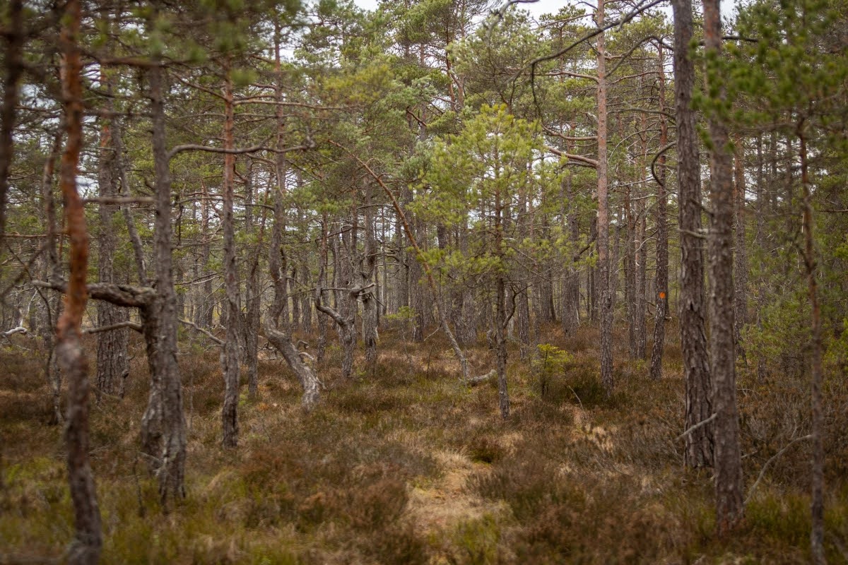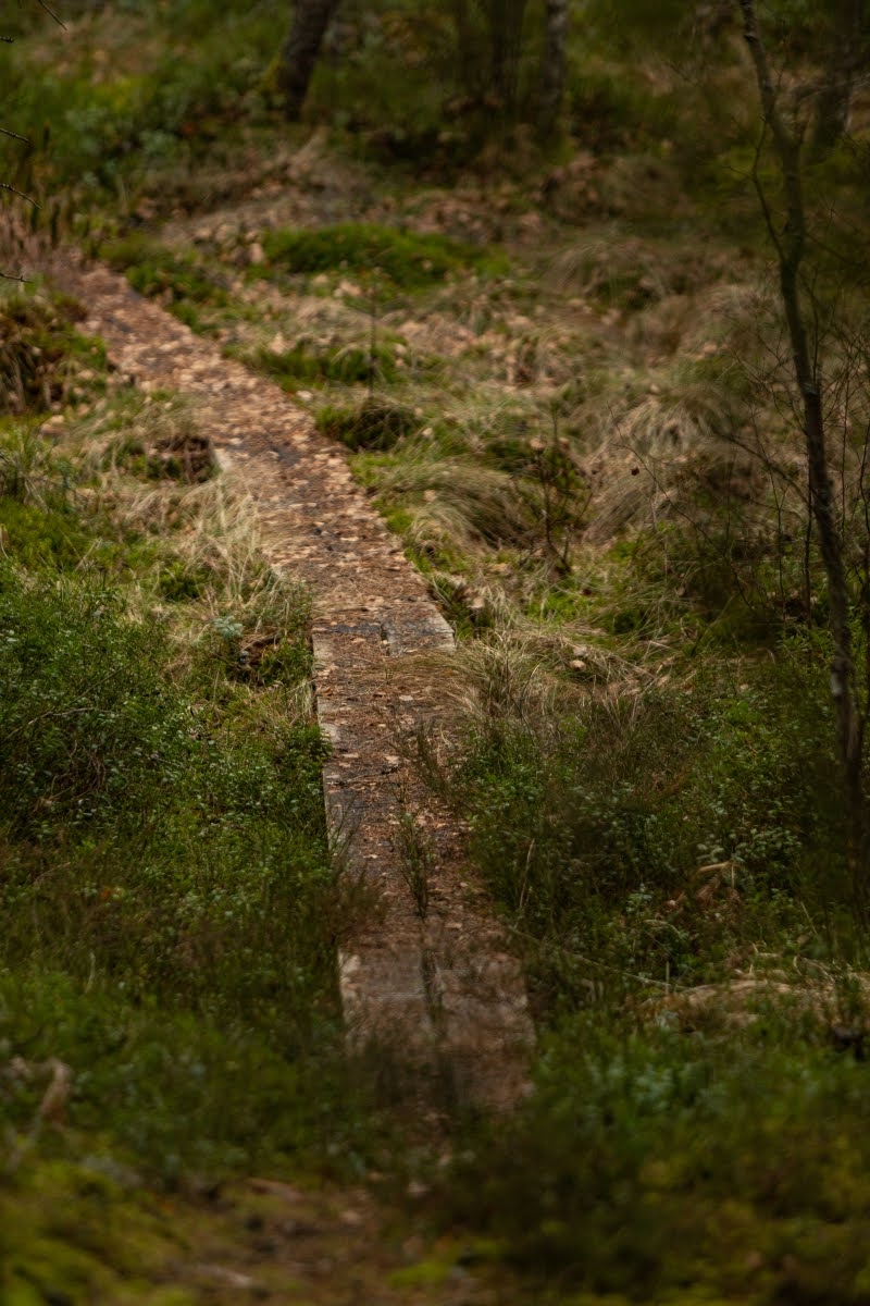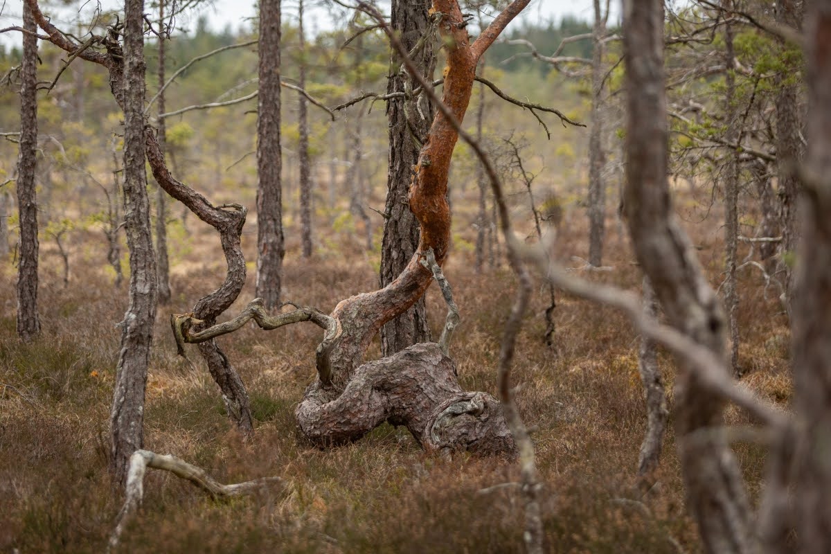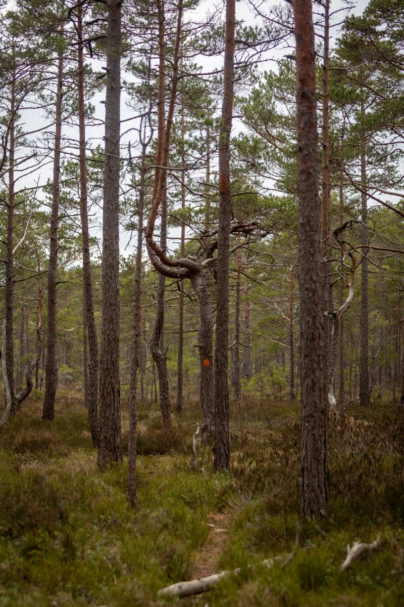 Im weiteren Verlauf wird der Weg zwar etwas sumpfiger, aber leichter zu gehen. Er verläuft jetzt am Randes des Moores, überall sieht man von Wind und Wetter verformte Bäume, Kunstwerke der Natur in einer herrlichen Landschaft. Mit etwas Glück kann man hier auch die eine oder andere Tierbeobachtung machen.