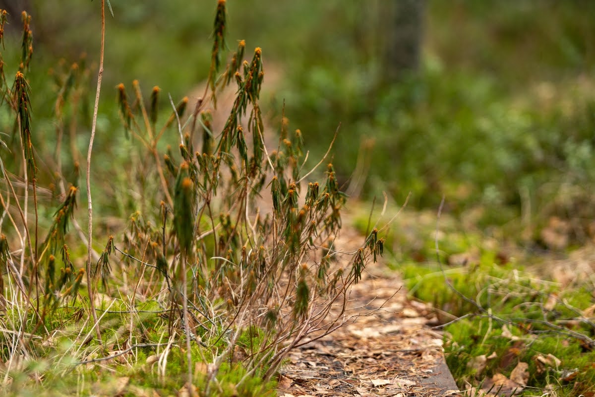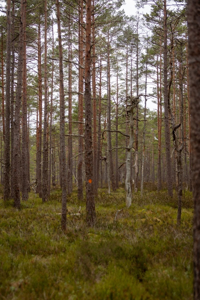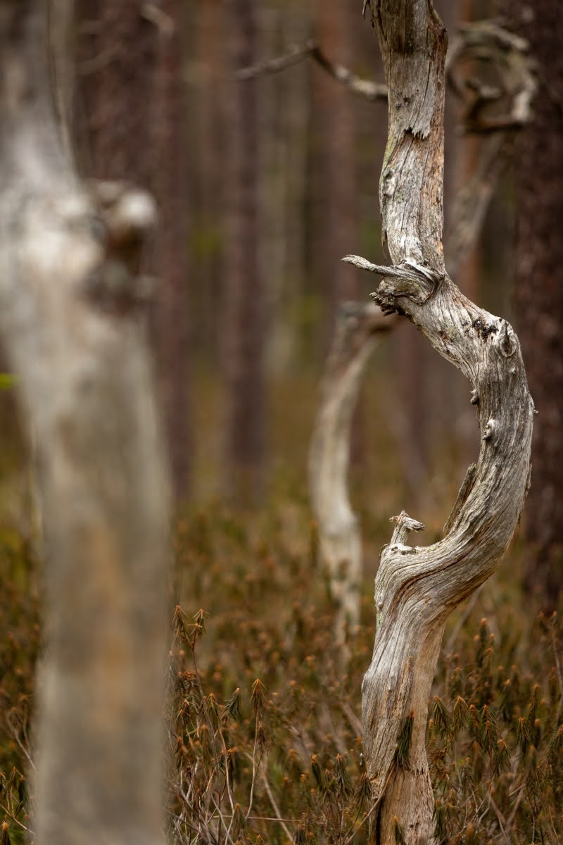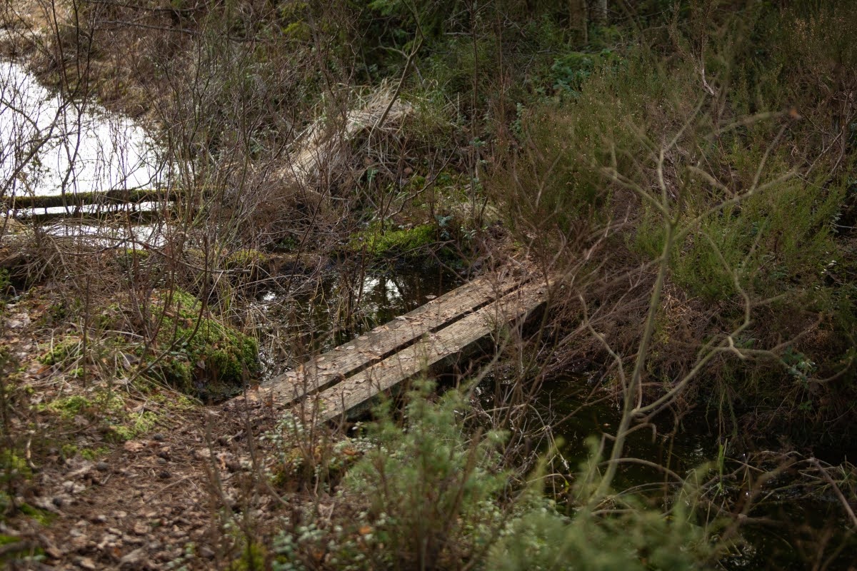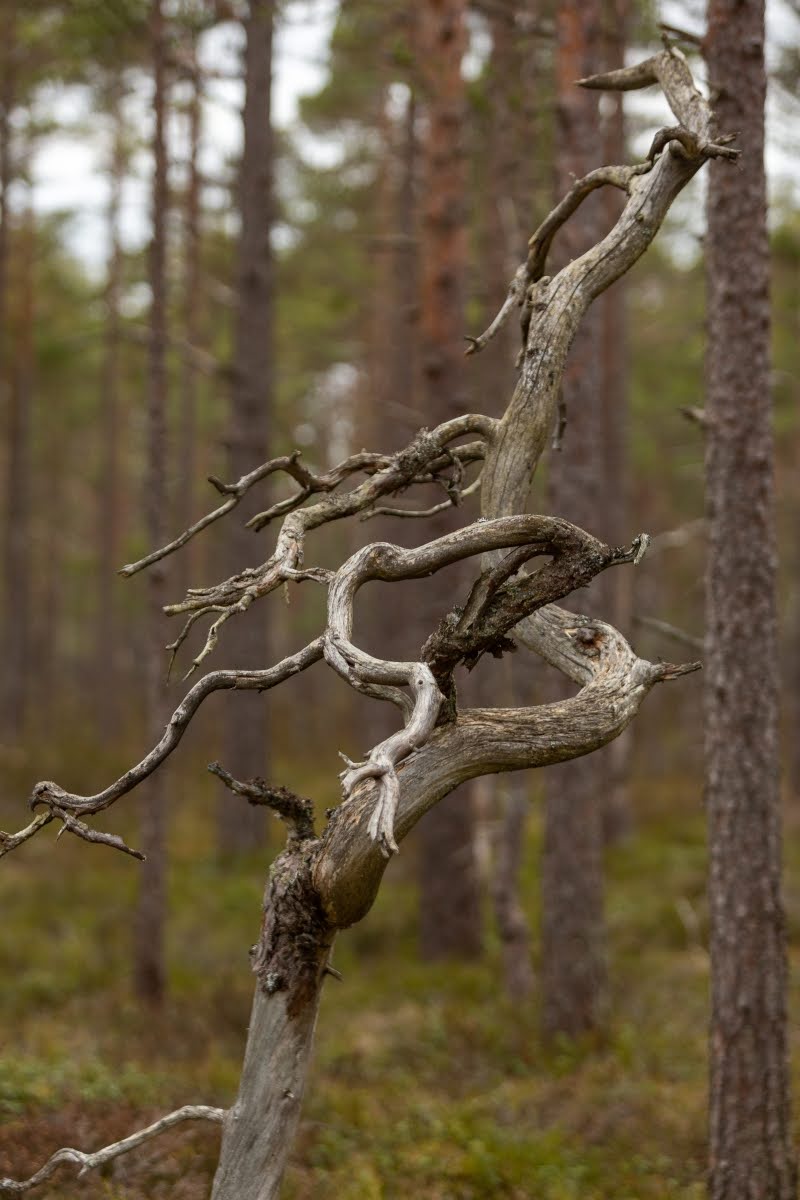 Im weiteren Verlauf wird der Weg zwar etwas sumpfiger, aber leichter zu gehen. Er verläuft jetzt am Randes des Moores, überall sieht man von Wind und Wetter verformte Bäume, Kunstwerke der Natur in einer herrlichen Landschaft. Mit etwas Glück kann man hier auch die eine oder andere Tierbeobachtung machen.