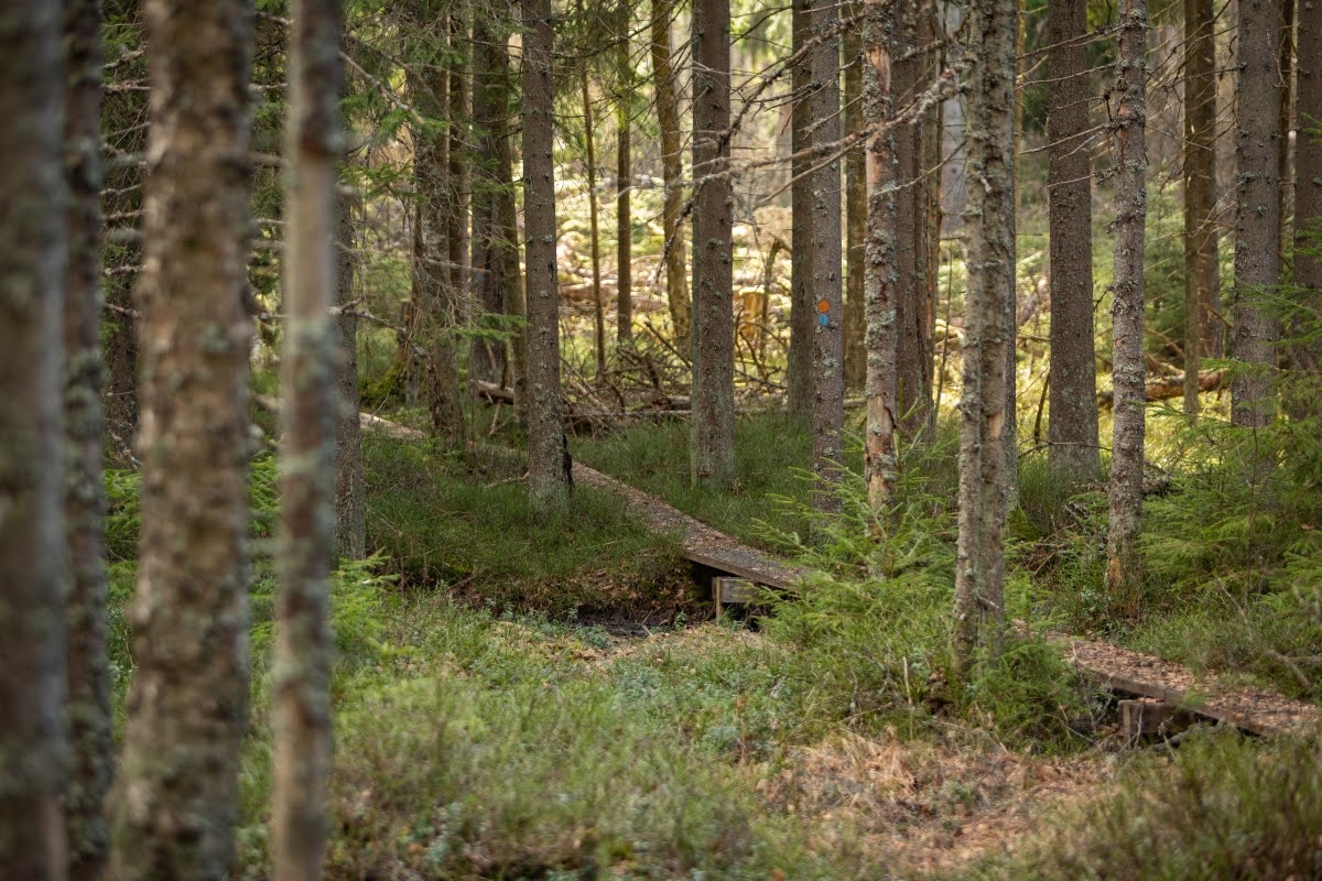 Tatsächlich sollte es sich bei dem Weg um einen familienfreundlichen, einfachen Pfad handeln, der sich wunderschön durch das Naturreservat schlängelt. Leider sind in letzter Zeit gerade hier sehr viele Bäume umgestürzt und blockieren den Weg, der an einigen Stellen nur sehr schwer zu passieren ist. Wenn man sich auf einige Klettereinlagen einlässt, ist die Wanderung aber durchaus machbar, auch gutes Schuwerk ist sehr empfehlenswert, da der Pfad an einigen Stellen ziemlich versumpft ist.