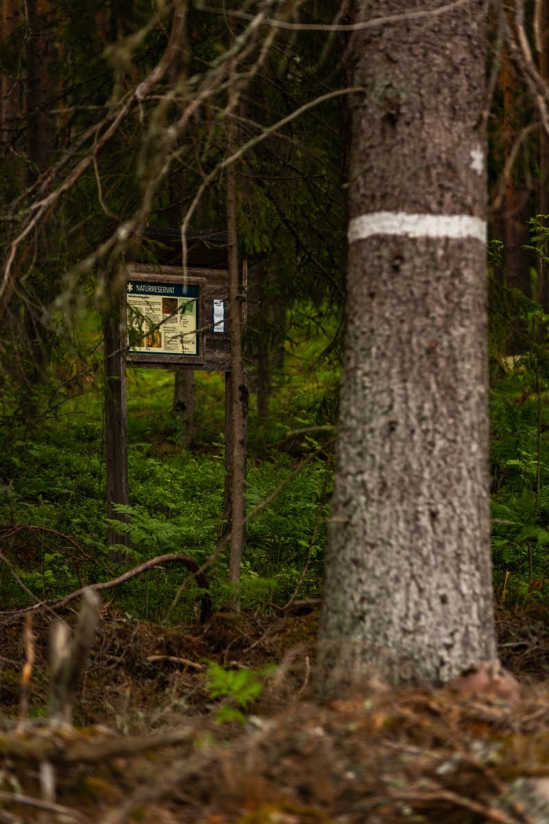 Der Wald besteht überwiegend aus Nadelbäumen, er wird komplett sich selbst überlassen und bietet keinerlei touristische Infrastruktur. Lediglich eine Infotafel mitten im Nirgendwo informiert über das Reservat, über mehrere schmalste Trampelpfade, die zumeist nach ein paar Metern wieder enden, hat man Zugang zu diesem verwunschenen Ort. Ein Wald wie aus dem Film Ronja Räubertochter. Magisch!