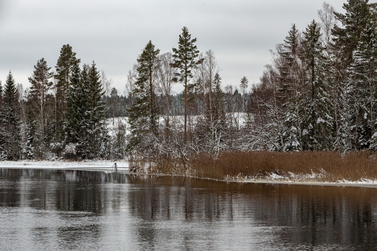 Die folgenden Fotos entstanden am Emån und in seiner Nähe, ein Fluß, der kurvenreich durch Småland mäandert und in dem sich zur warmen Jahreszeit viele Kanuten tummeln. Jetzt im Winter kann man hier mit etwas Glück Fischotter beobachten, auch Schwäne und viele andere Wasservögel sind zu sehen.