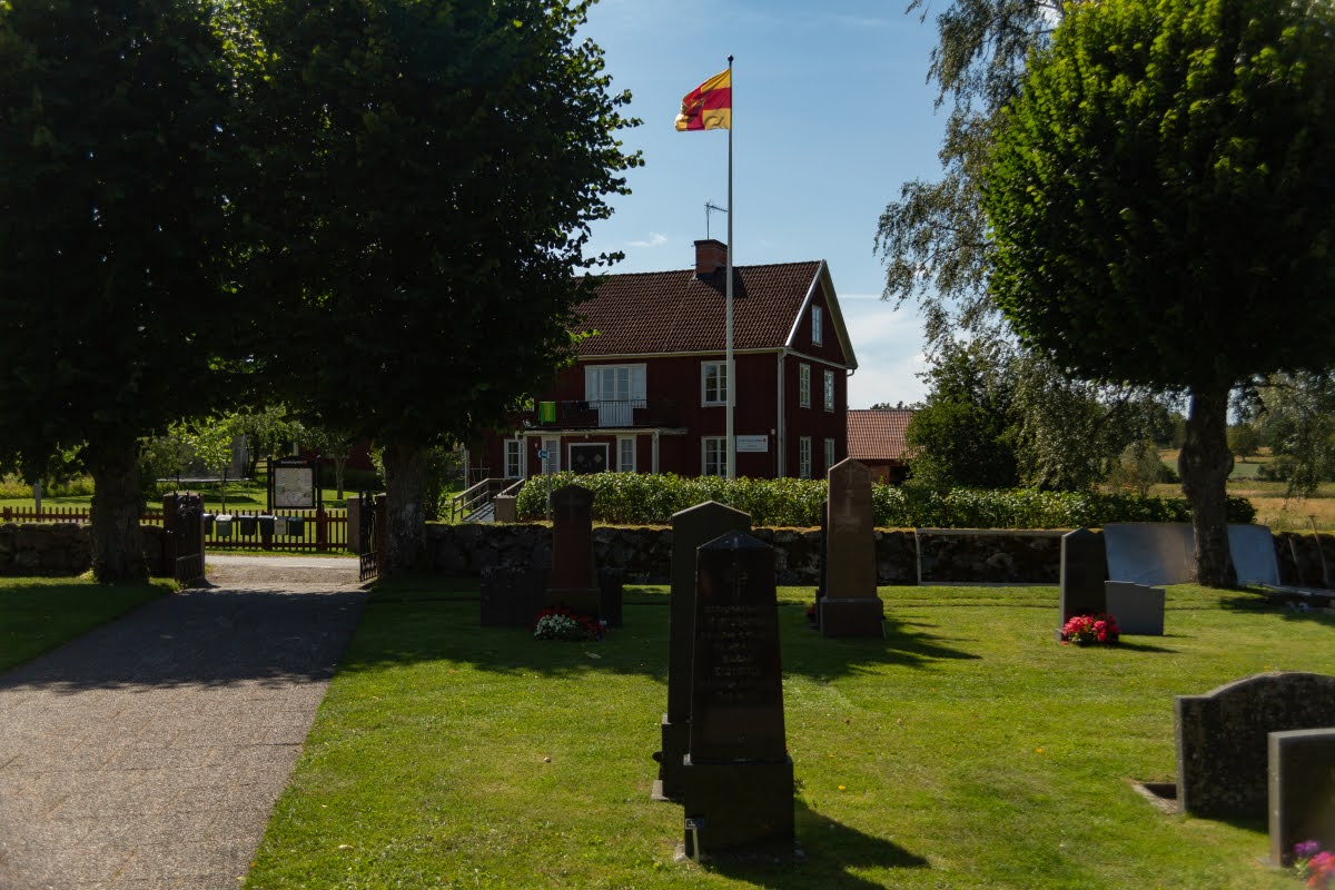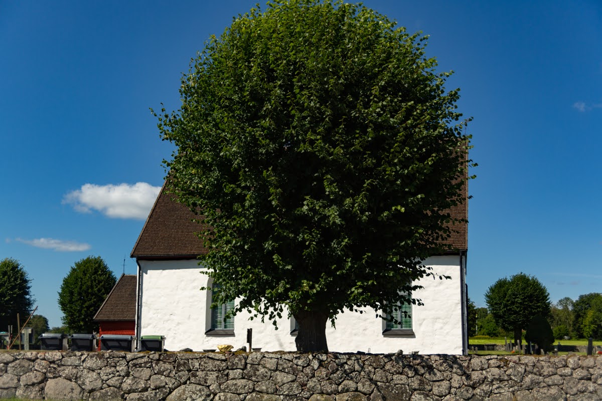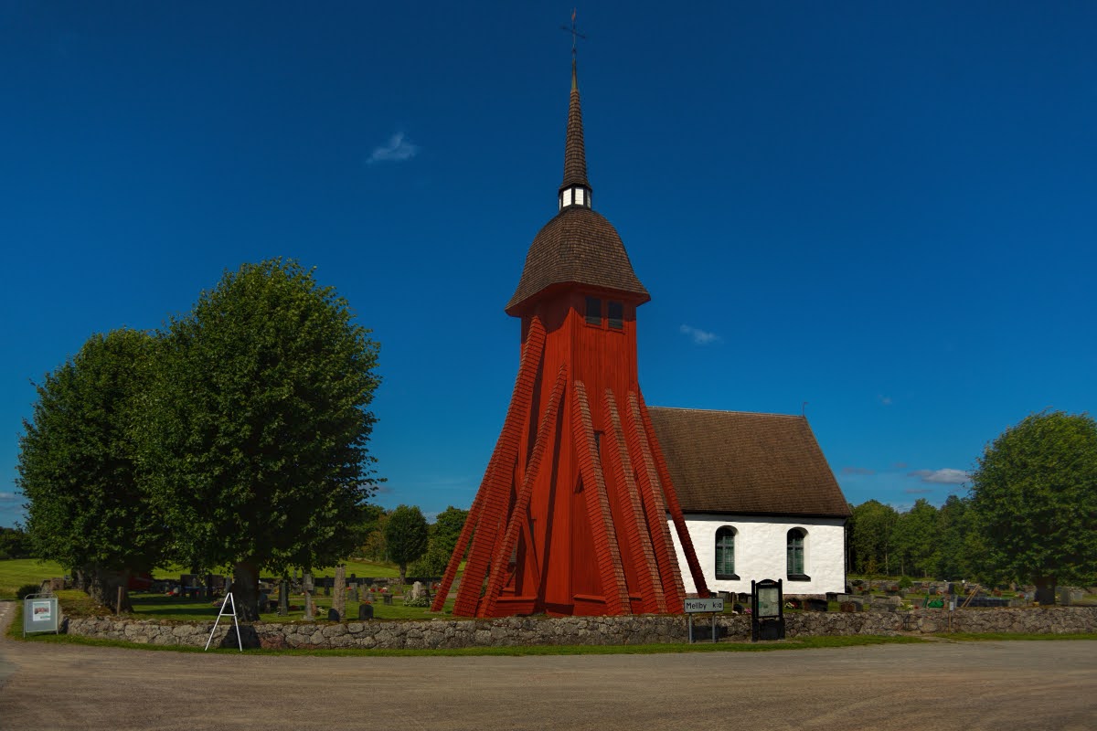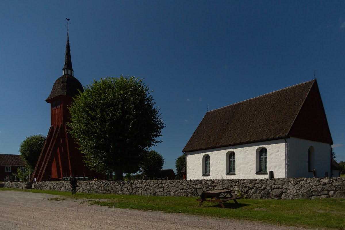 Im Vorbeifahren entdeckt – die wunderschöne alte Kirche von Mellby, Ecksjö kommun. Mellby ist ein kleiner Ort, grob gesagt genau in der Mitte zwischen Ecksjö und Vetlanda an der Straße 894 gelegen. Direkt an der Kirche gibt es einen Feldweg zum Badeplatz am See Solgen, hier gibt es sogar einen kleinen Bootshafen.