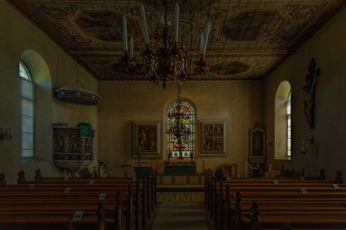 Die Kirche wurde bereits um 1400 gebaut, der Glockenturm stammt aus dem Jahr 1673. Die beeindruckenden Deckengemälde wurden von Olof Raam, einem Kirchenmaler aus Ecksjö im Jahr 1719 gemalt.