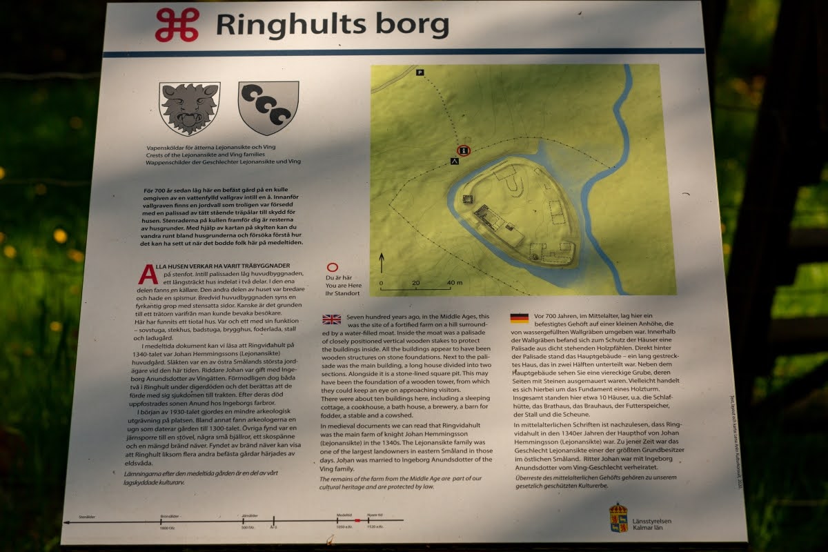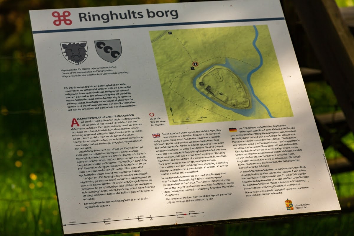 Nördlich von Fagerhult (Högsby kommun) gibt es bei dem kleinen Dorf Ringhult einen besonderen historischen Platz zu erkunden. An dieser Stelle baute der Ritter Johan Hemmingsson im Jahr 1340 eine Burg, die schließlich im Jahr 1540 zerstört wurde. Überreste und der beeindruckende Burggraben sind heute noch erhalten, die Lage im wunderschönen ländlichen Småland macht den Ort nicht nur für Geschichtinteressierte sehr interessant.