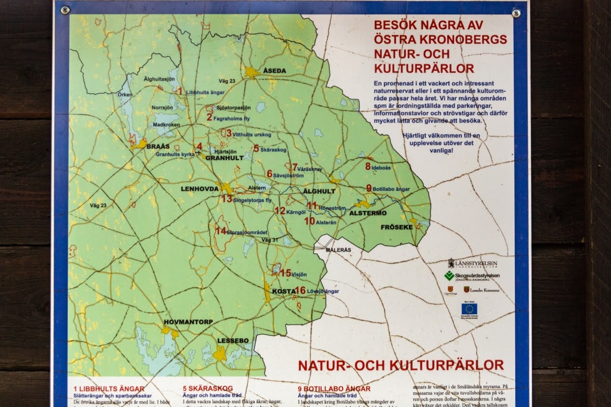 Ein außergewöhnliches und sehr abwechslungsreiches Naturreservat stand heute auf dem Plan. Hier gibt es eine große Palette dessen zu sehen, was die Natur und Landschaft in Småland prägt und sie so unvergleichlich schön und interessant macht. Zentral im Naturreservat liegt der Vitthults Urskog, ein verwunschener Urwald mit bis zu 400 Jahre alten Bäumen und unendlich viel Totholz, dazu noch verschiedene Moore und eine großartige Agrarkulturlandschaft. Außerdem gibt es noch einen ehemaligen See, den Träholmasjön, der inzwischen versumpft ist und von einer Aussichtsplattform aus besichtigt werden kann. Hier kann man zur richtigen Jahreszeit viele Zugvögel und andere Tiere beobachten. Der Zugang zur Plattform ist übrigens behindertengerecht ausgebaut.