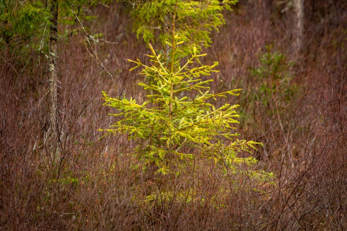Im Sommer dürfte der Urwald ein echtes Paradies für Blaubeer- und Preiselbeersammler sein, selbst jetzt, Anfang März fand ich hier lecker rot glänzende Preiselbeeren – eine Geschmacksprobe ergab allerdings, daß das kein Scherz des Klimawandels war, sondern Restbestände aus dem letzten Jahr. Lecker geht anders.