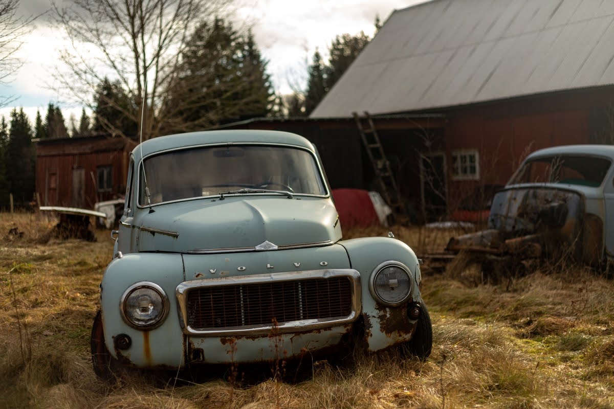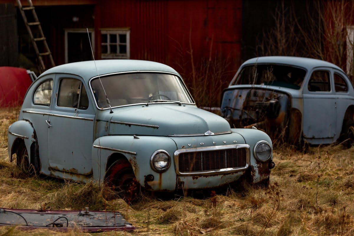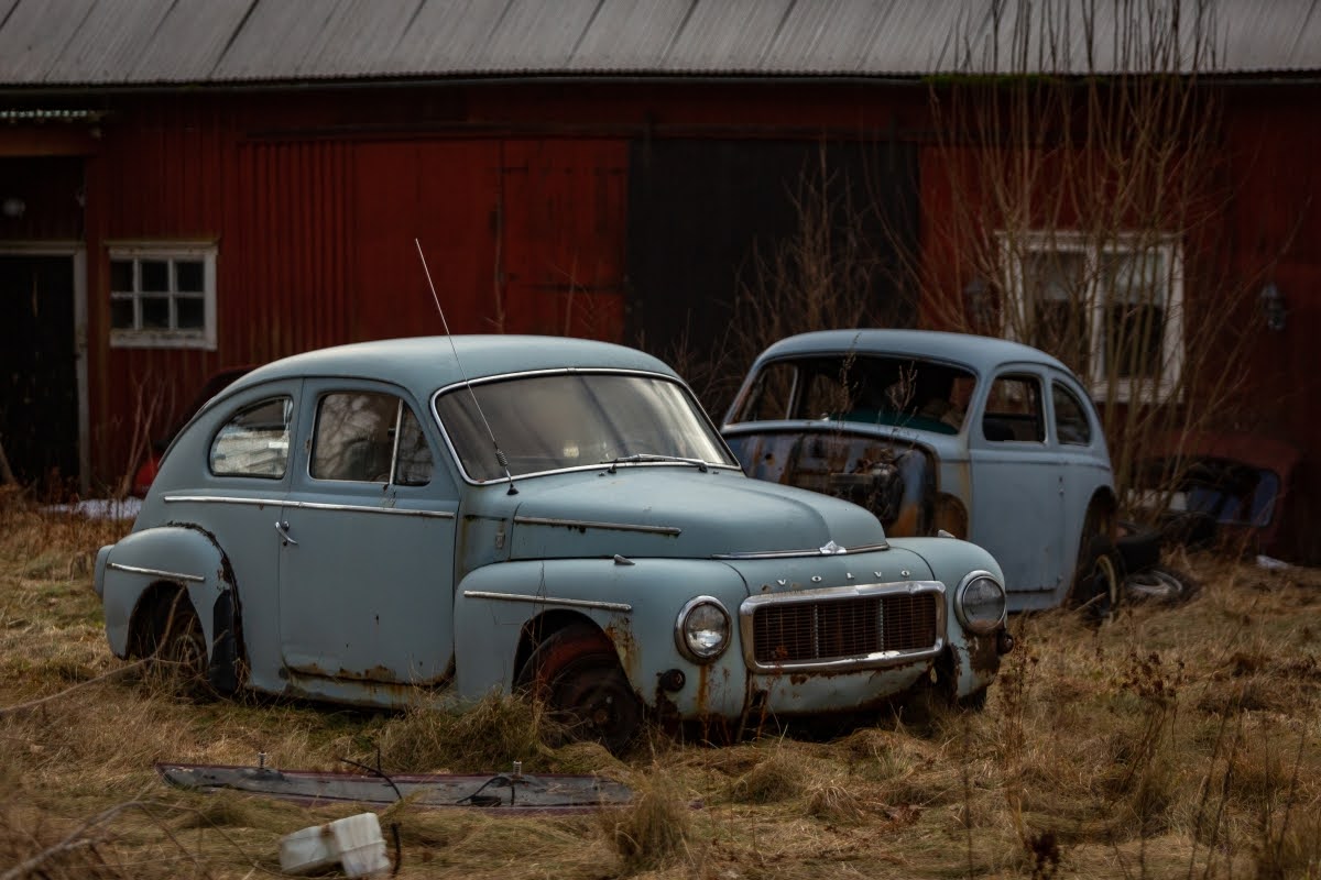 Unglaublich, was hier alles zu finden ist – auf dem Grundstück, im Garten, in der Scheune und Garage verteilt stehen etwa 20 alte Volvo-PKW´s vom Typ PV444 und vor allem PV544, sogenannte Buckelvolvos aus den 1950er und 60er Jahren, dazu noch einige PV445 Duett, also die Kombivariante, und ein Volvo 240 aus den 1970er Jahren.