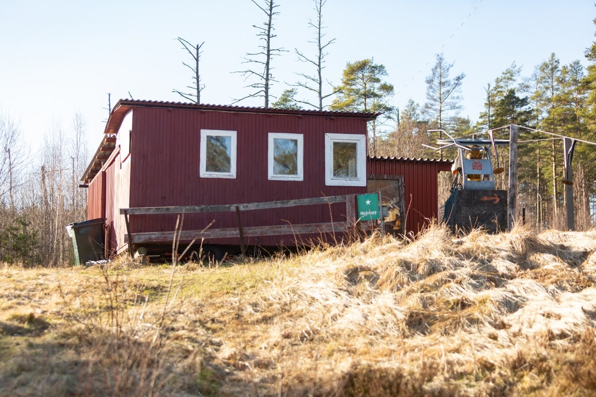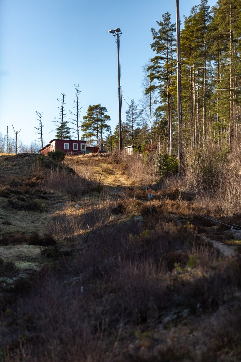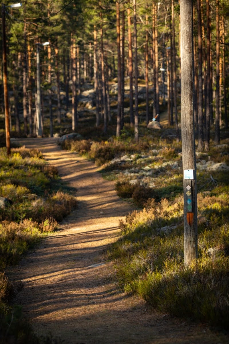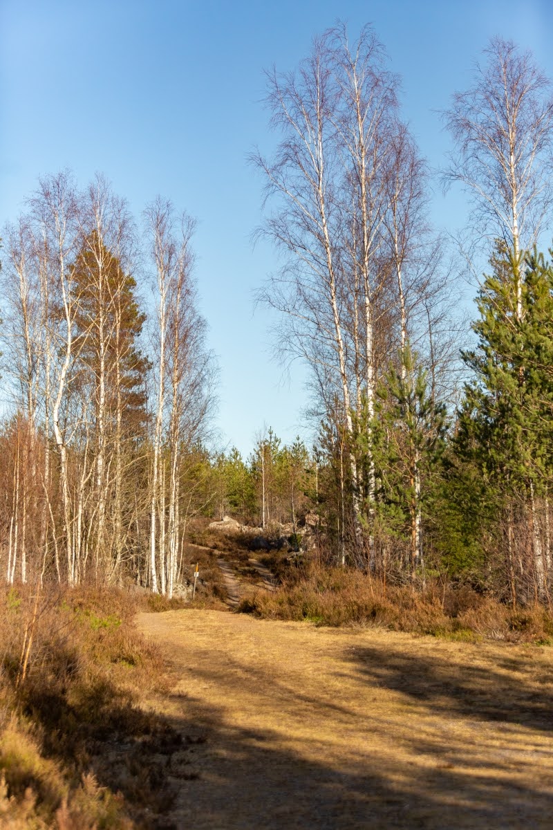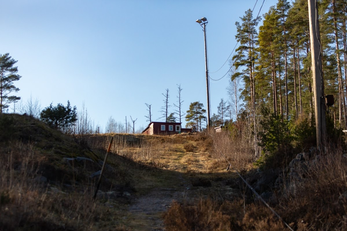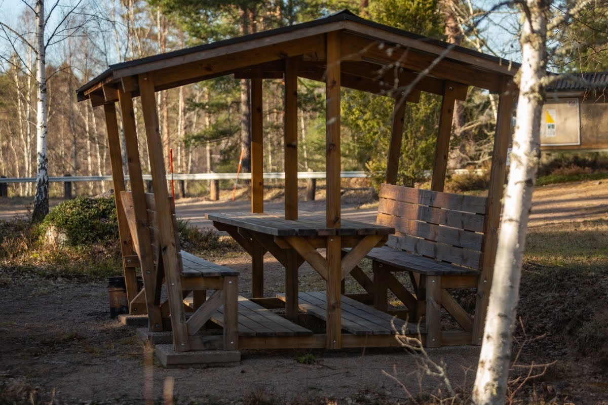 Einige Meter später geht es schließlich an einem verfallenen Skilift kurze Zeit steil bergauf bis zur MOK-Stugan, einem beliebten Ausflugsziel. Hier befindet sich auch ein Rastplatz mit überdachten Picknicktischen und eine weitere Vindskytt. Ab hier geht es bergab, der Weg wird breiter und folgt zumeist Forstwegen. Ein Stück des Weges verläuft recht unromantisch an der vielbefahrenen Straße 23 und bereits wenige Meter später ist man wieder am Ausgangspunkt angekommen.