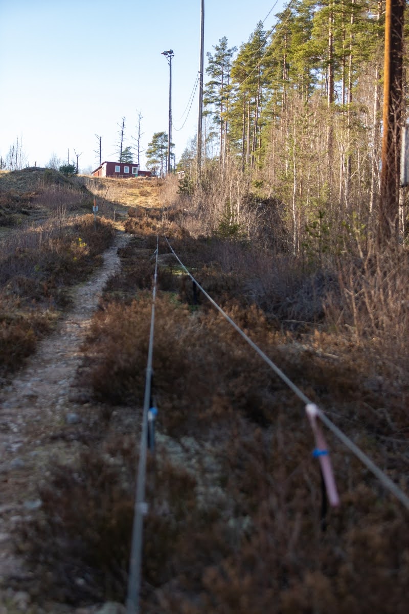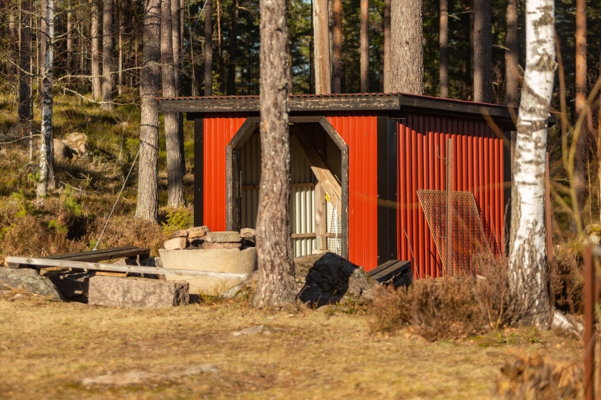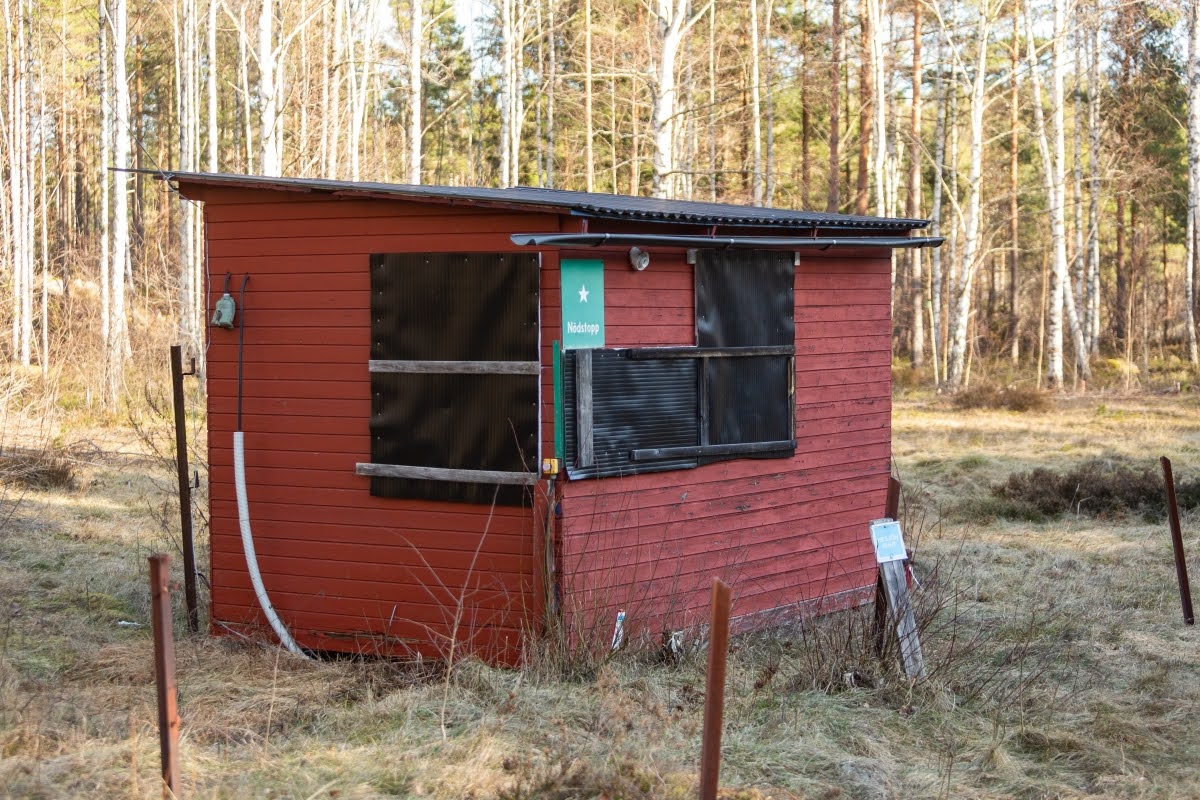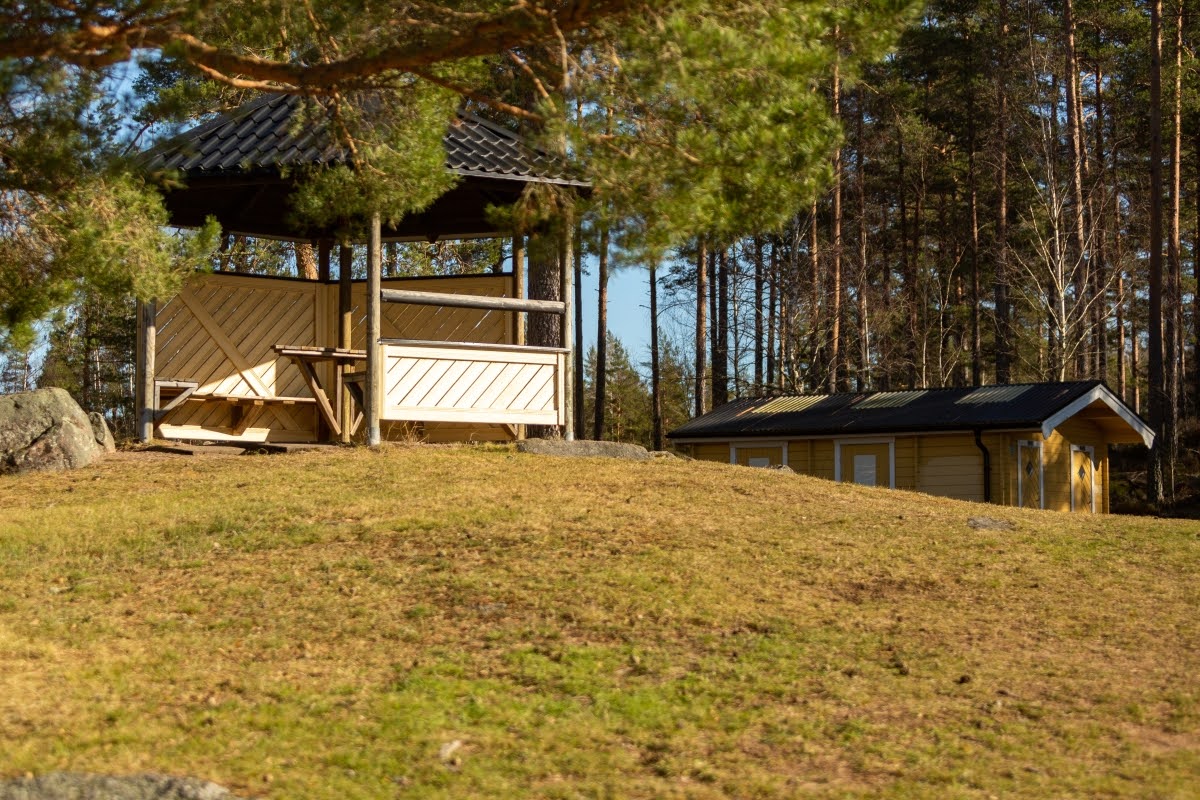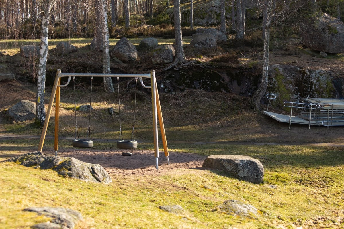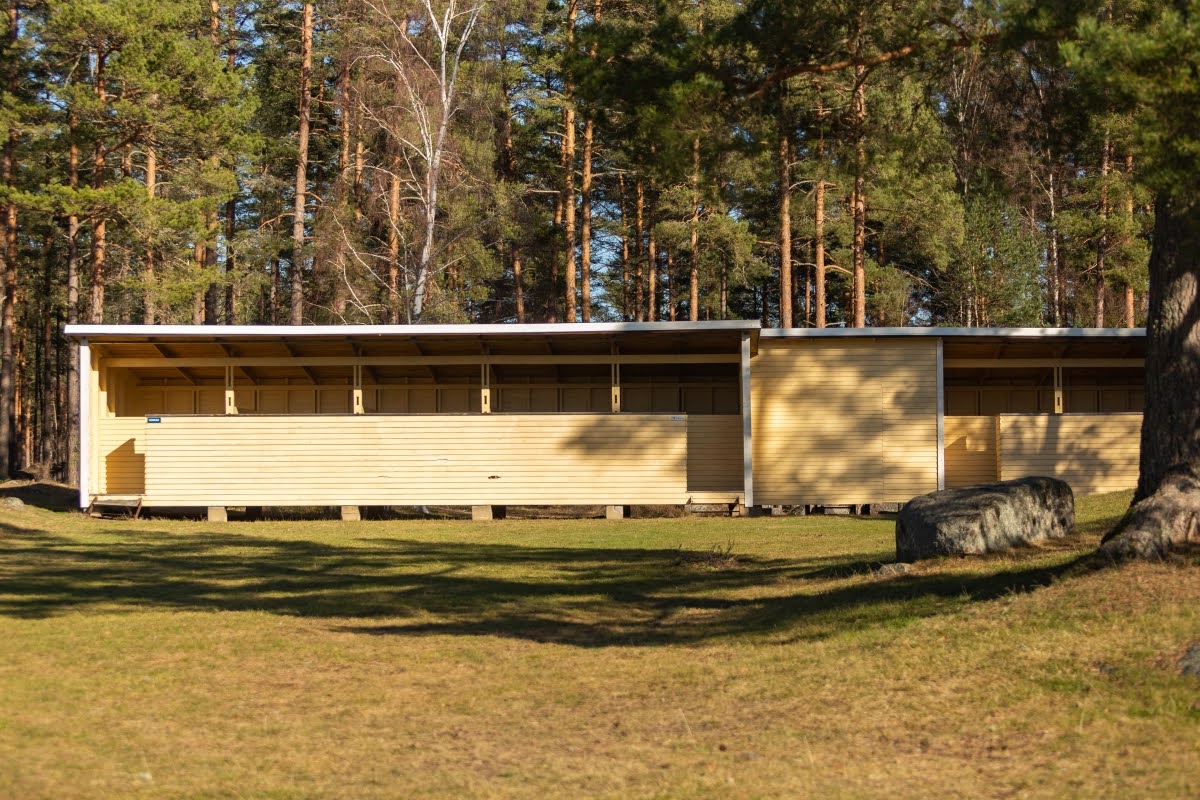 Einige Meter später geht es schließlich an einem verfallenen Skilift kurze Zeit steil bergauf bis zur MOK-Stugan, einem beliebten Ausflugsziel. Hier befindet sich auch ein Rastplatz mit überdachten Picknicktischen und eine weitere Vindskytt. Ab hier geht es bergab, der Weg wird breiter und folgt zumeist Forstwegen. Ein Stück des Weges verläuft recht unromantisch an der vielbefahrenen Straße 23 und bereits wenige Meter später ist man wieder am Ausgangspunkt angekommen.