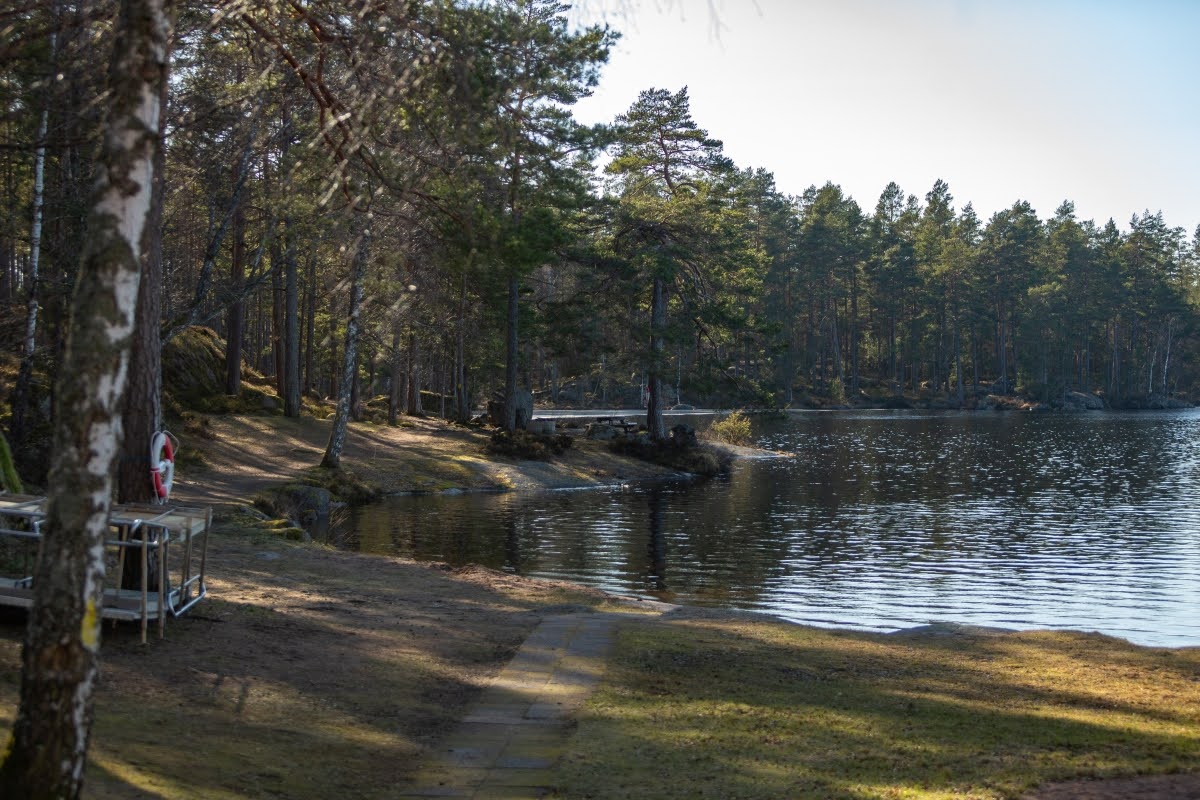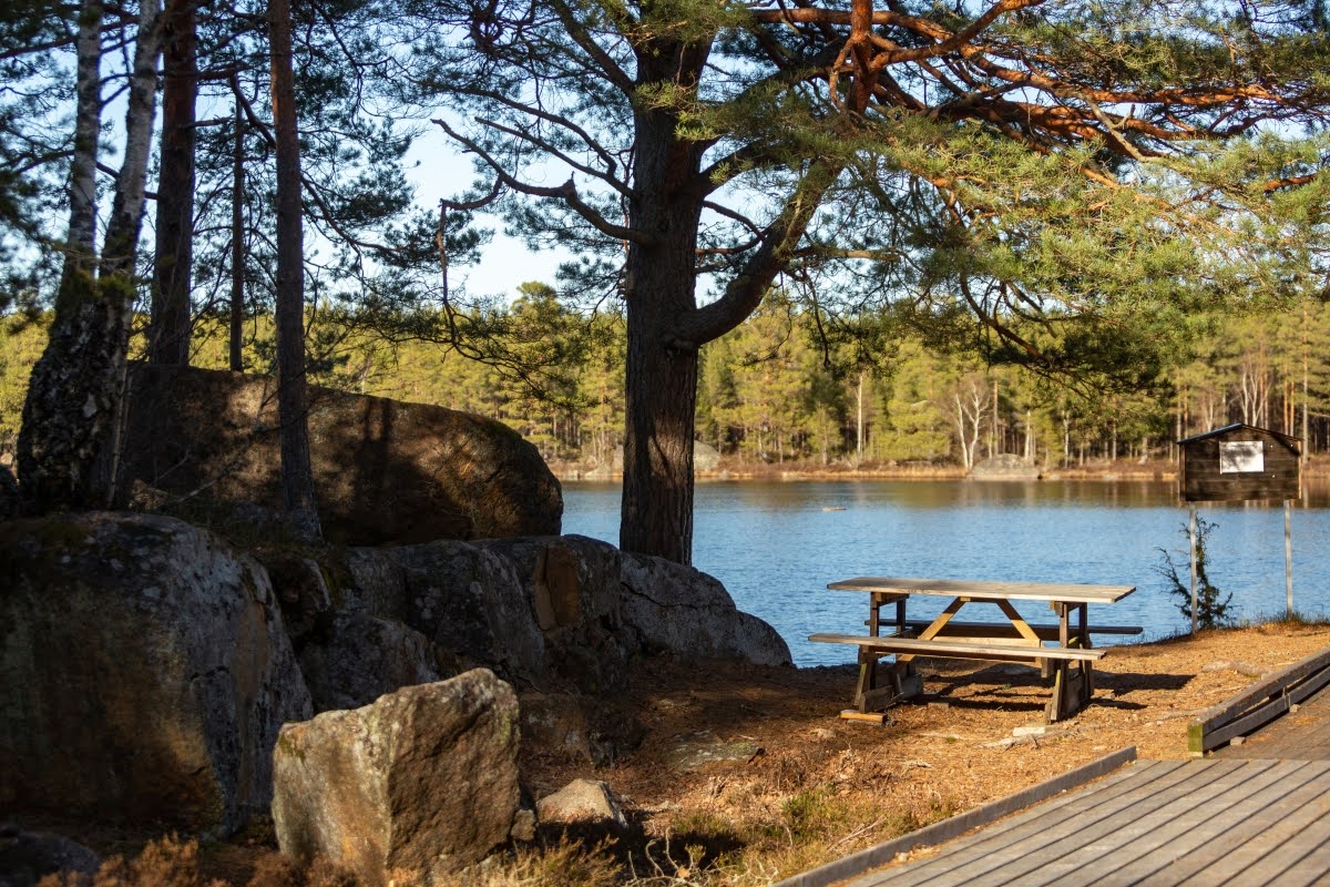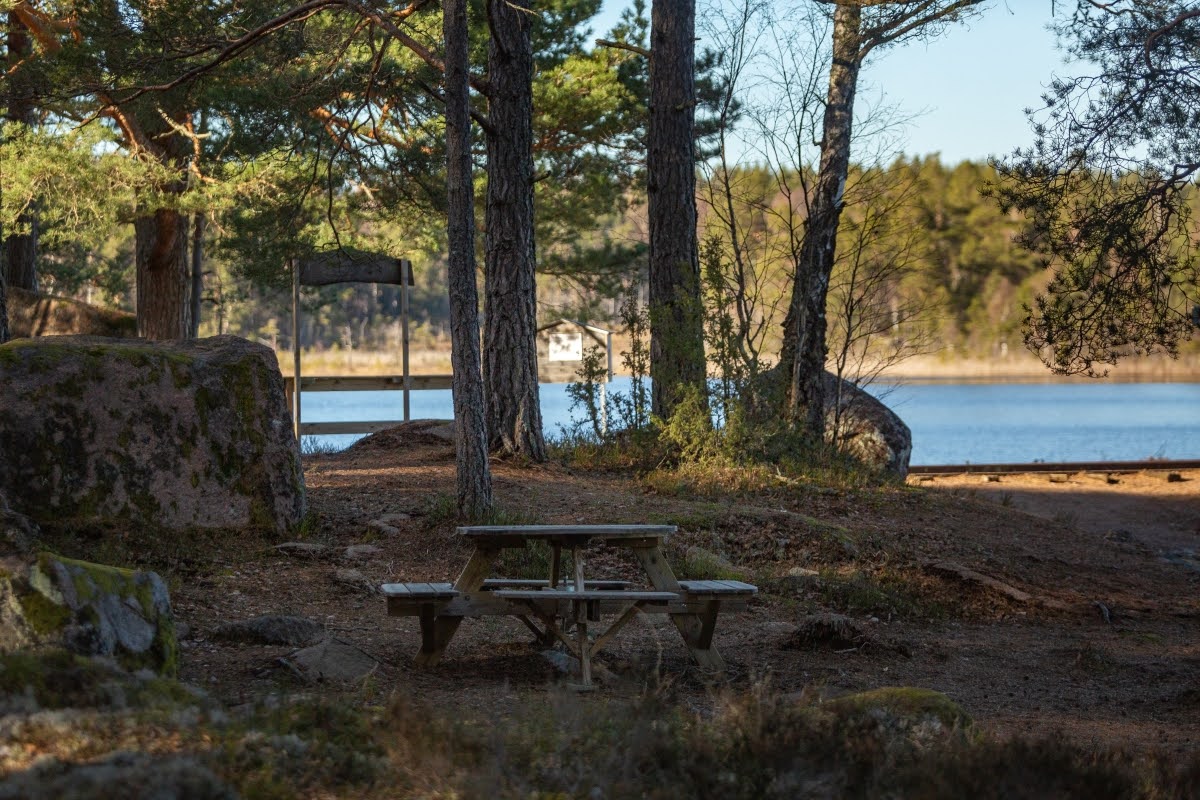 Die Hesjön runt startet direkt am Parkplatz und folgt einem schmalen, kurvenreichen Pfad um den Hesjön. Mt einer Länge von etwa 6 Kilometern ist die Wanderung nicht besonders lang und auch wenig anspruchsvoll, auch wenn am Ende ein paar Höhenmeter zusammenkommen. Unterwegs findet man immer wieder einige schöne Picknickplätze und Windschutzhütten.